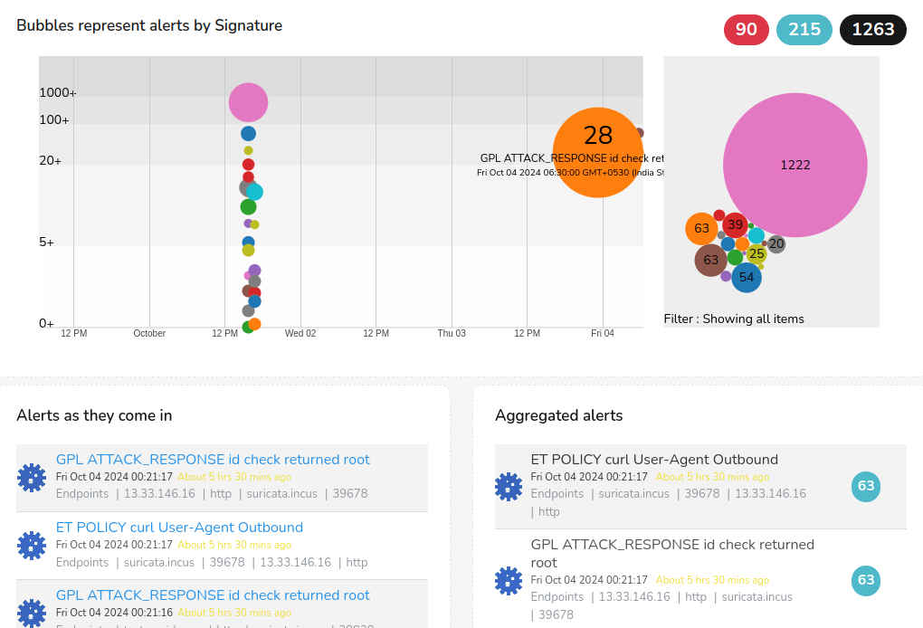 - Allow pivoting of view from alert signature, end points, priority, and classification